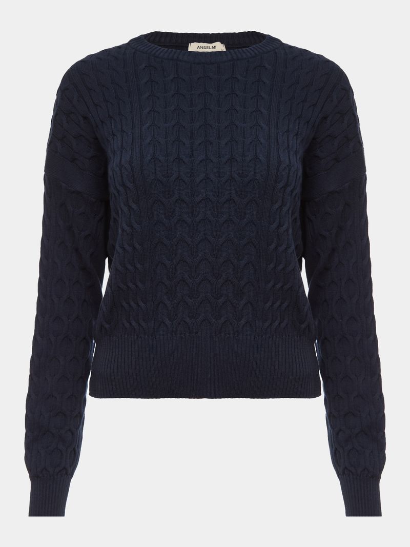 The weave in geometric pattern is the highlight of the sweater in 100% cotton threads. With a round collar and offset armhole, the piece has a straight fit finished off by a fluted harmonica. A light and charming option to create practical and comfortable looks.