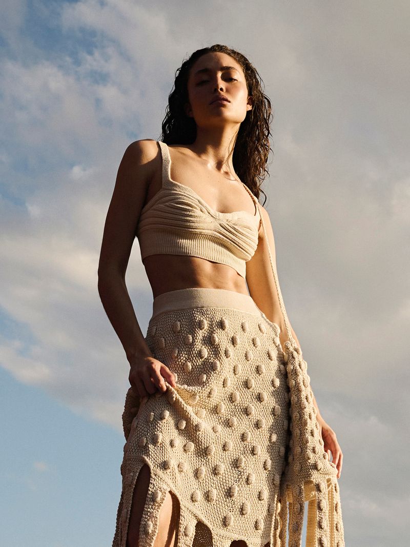 The Uncomplicated Sophistication of Summer in Lanzarote Inspired the Most Special Weavings of Our Knitting. The Cropped Top Features a Charming Oyster Stitch Detail on the Bust and a Sinuous Design on the Straps. Without a Doubt, a Statement Piece That Will Transform Your Looks Next Season.
