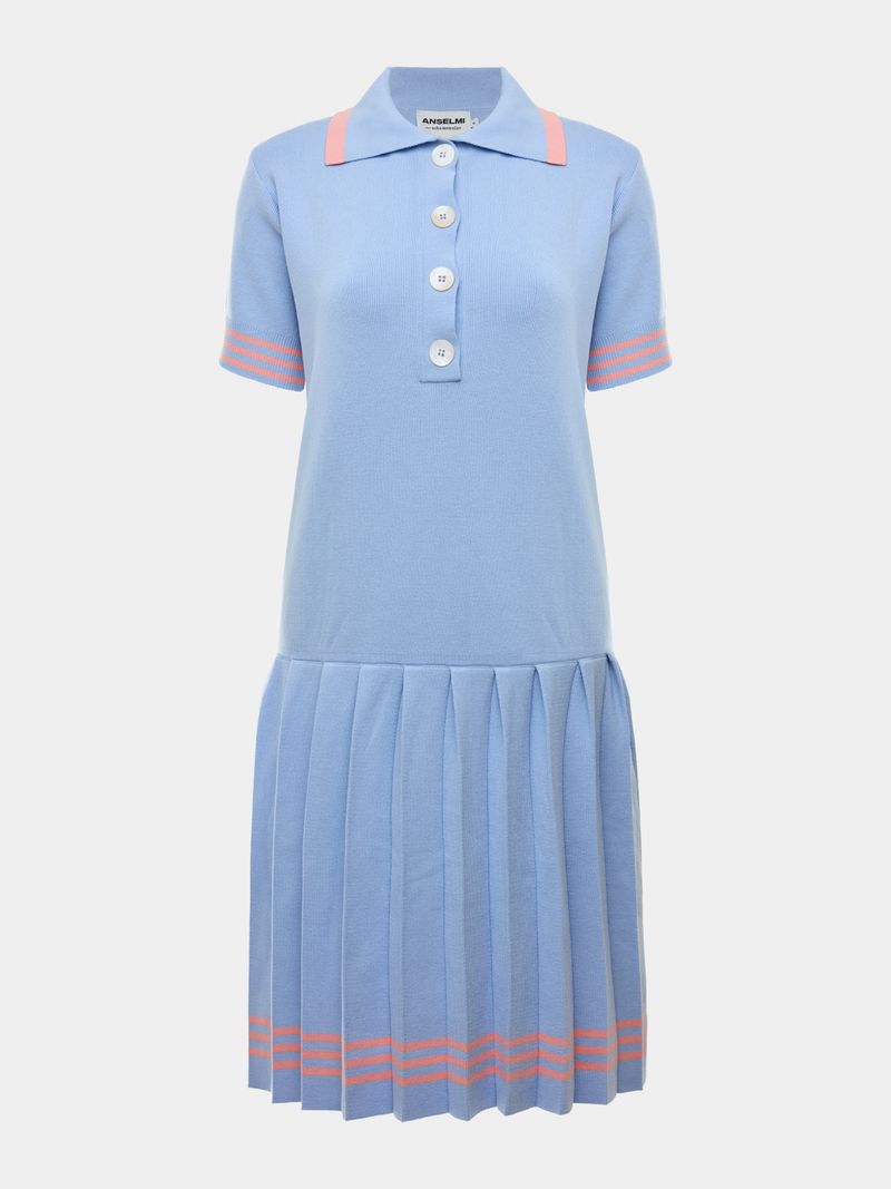 Inspired by the world of tennis, the Anselmi + Ucha Meirelles polo dress is the definition of sporty chic. Made of modal, the garment has a polo collar, pleated skirt and stripes on the hem.