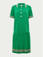 Inspired by the world of tennis, the Anselmi + Ucha Meirelles polo dress is the definition of sporty chic. Made of modal, the garment has a polo collar, pleated skirt and stripes on the hem.