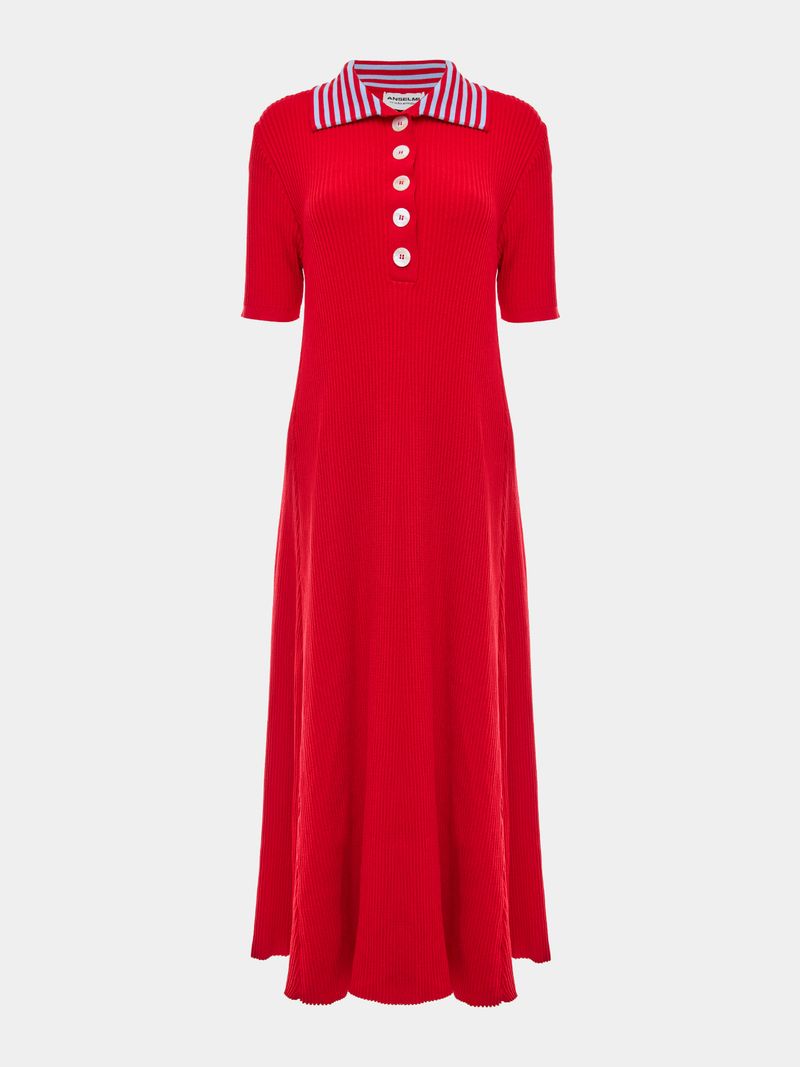The sporty chic style is the inspiration behind the Anselmi + Ucha Meirelles midi dress. Made of ribbed modal, the garment has a polo collar, a wide fit and a flared skirt. A timeless dress that easily transitions between casual and sophisticated