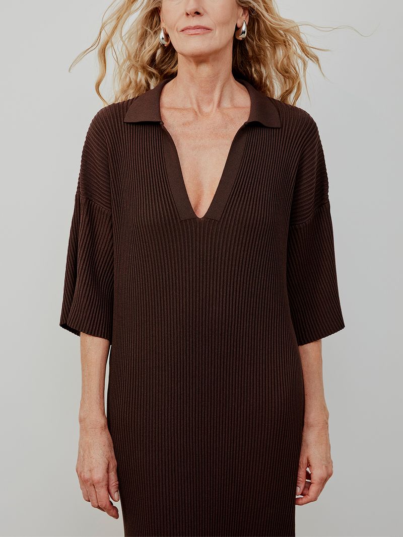 Made in Ribbed Knit, the Polo Neck Midi Dress is a Must-Have Piece in Your Vacation Suitcase. During the Day, It Becomes a Stylish Beach Cover-Up, and at Night, It Makes a Charming Pair with Sophisticated Accessories.